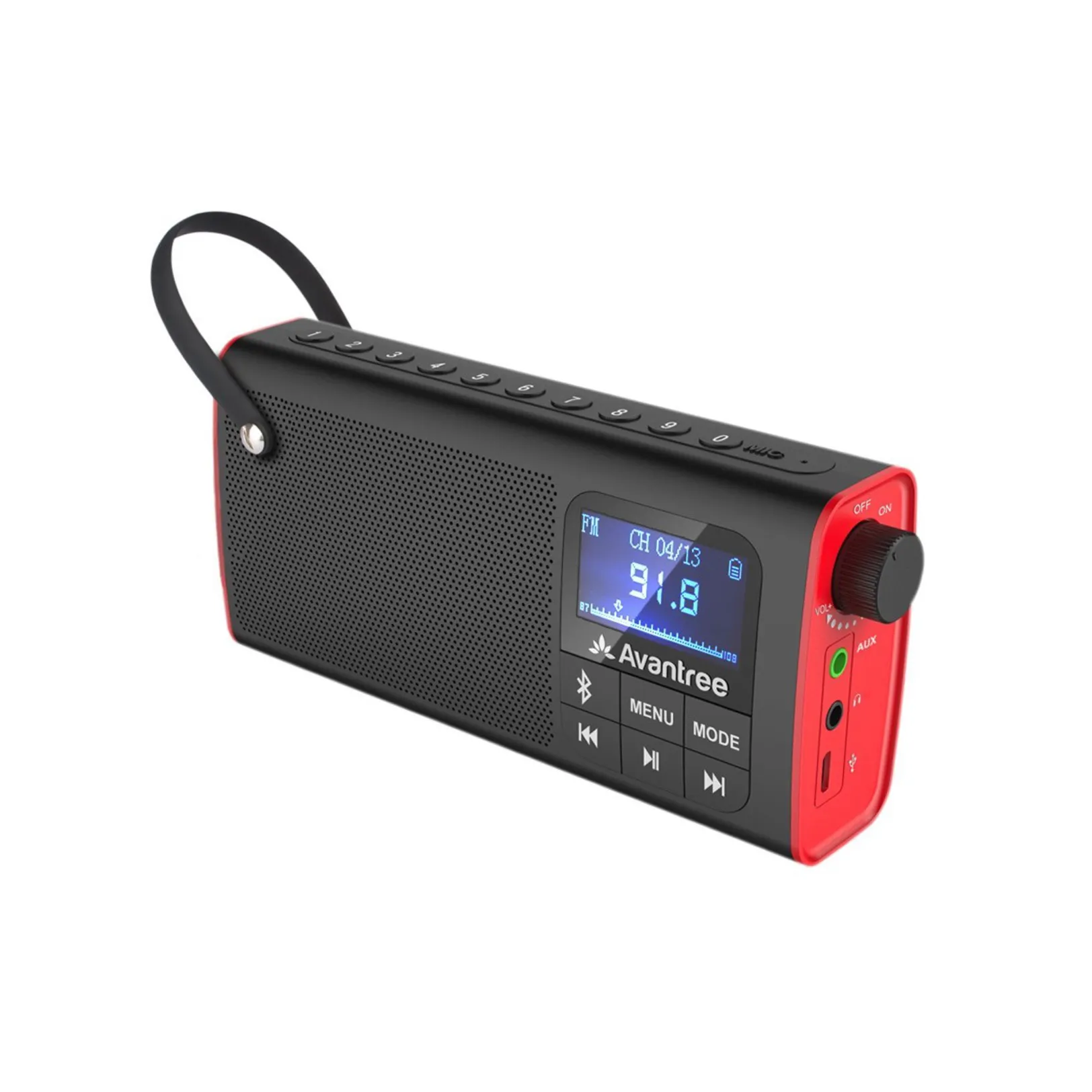 Questo altoparlante amplifica innanzitutto la musica di smartphone, tablet e computer tramite Bluetooth, o eventualmente via cavo (jack da 3.5mm) con la presa Aux. Ha due driver, di cui uno sul retro dedicato esclusivamente all’amplificazione dei bassi, per una resa davvero ottima. Incorpora una radio FM, le cui stazioni si rintracciano facilmente grazie al display LCD, combinato con i tasti per saltare da una stazione memorizzata all’altra.
