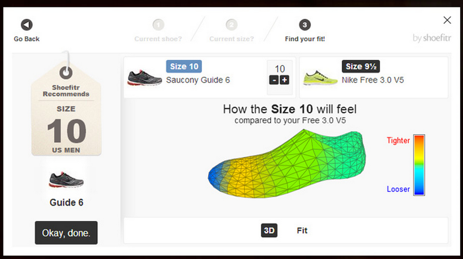 Shoefitr si avvale di una tecnologia 3D che è in grado di scannerizzare l’interno di una calzatura, ad esempio una scarpa che già possediamo e che calza a pennello; in base ai risultati dell’analisi, sarà in grado di consigliarci altri paia di scarpe che potrebbero essere “compatibili” con il nostro piede, facilitando la scelta delle scarpe. Potremo così paragonare un modello che già possediamo con un modello che vorremmo acquistare e verificare. Questa tecnologia potrebbe ridurre sensibilmente la percentuale di resi da parte di quei clienti che acquistano un prodotto per poi restituirlo dopo averlo provato a casa.