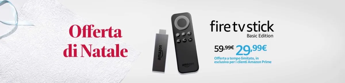 A quel punto, come recita il banner promozionale oggi visibile sulla homepage di Amazon, Fire TV Stick sarà scontato di 30 euro: fino alle 8:59 del 22 dicembre si potrà quindi pagare soltanto 29,99 euro (spedizione inclusa), successivamente per gli utenti Prime resterà comunque il prezzo promozionale di 39,99 euro. L’offerta è limitata all’acquisto di un massimo di due pezzi per cliente.