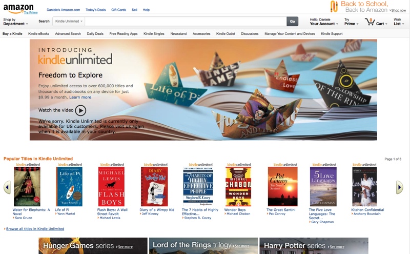 Negli scorsi giorni in rete sono apparse le tracce d Kindle Unlimited di Amazon: ora l’abbonamento mensile per l’accesso illimitato agli ebook è una realtà in USA. Il costo mensile e la quantità di materiali a cui l’utente ottiene accesso iscrivendosi a Kindle Unlimited sono identici a quanto emerso dalle pagine cache rimosse ma individuate negli scorsi giorni: pagando 9,99 dollari al mese è possibile scaricare una quantità illimitata di ebook da un catalogo di oltre 600mila titoli, oltre a migliaia di audio libri.
