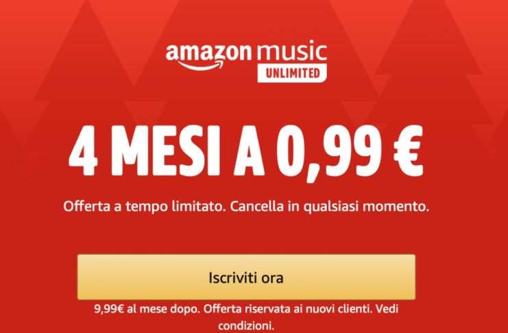 L’offerta ha delle condizioni. Le due principali sono che non si deve mai essere stati iscritti ad Amazon Music Unlimited e non si deve avere mai beneficiato del periodo d’uso gratuito di 30 giorni. Dopo avere usufruito dell’offerta non sarà più possibile fruire del periodo d’uso gratuito di 30 giorni di Amazon Music Unlimited. L’Offerta si può sottoscrivere solo fino alla mezzanotte di domani 14 ottobre, fine del Prime Day