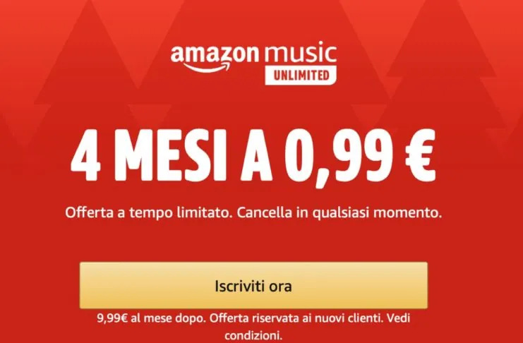 Quattro mesi con tutta la musica che volete a 99 centesimi, ma solo per oggi. È questa l’offerta che Amazon propone in occasione del Prime Day, quindi attiva solo per oggi e domani