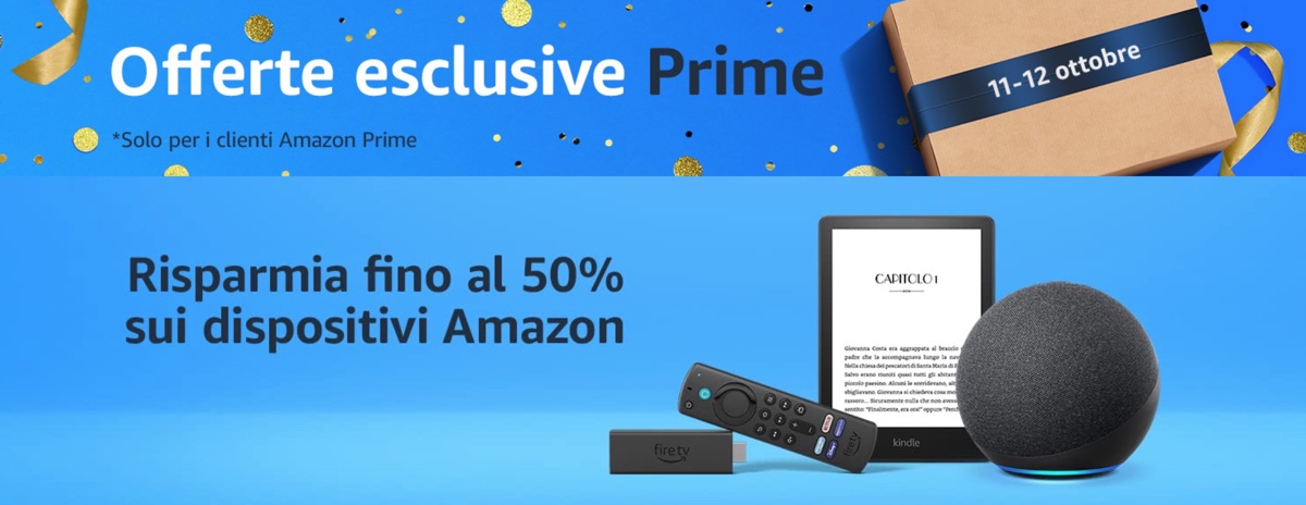In vista delle nuove Offerte esclusive Prime dell’ 11-12 settembre, Amazon proponeva già nei giorni scorsi numerosi sconti interessanti sui propri dispositivi, con risparmi fino al 50% e oltre del prezzo ufficiale di listino. Per esempio Amazon Echo Dot di terza generazione è proposto con il 64% di sconto a solamente 17,99 euro invece di 49,99 euro. Amazon Fire TV Stick con il 43% di sconto a 22,99€ invece di 39,99 euro, videocamere e video campanelli Blink con sconti fino a 115 euro e altri ancora.