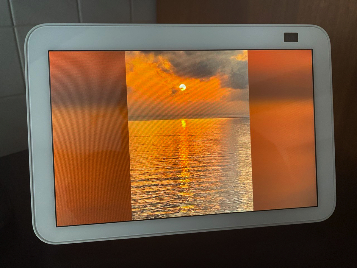 Quando viene attivata la funzione Photo Frame lo schermo di Echo Show viene interamente dedicato alla visualizzazione di foto e immagini, senza alcuna interruzione né invasioni di schermo dovuti a consigli e suggerimenti casuali di Alexa, avvisi di calendario per impegni e appuntamenti, ricette consigliate e così via. Spariscono persino il perenne orologio e anche le previsioni meteo. Tutto questo per un periodo di tre ore.