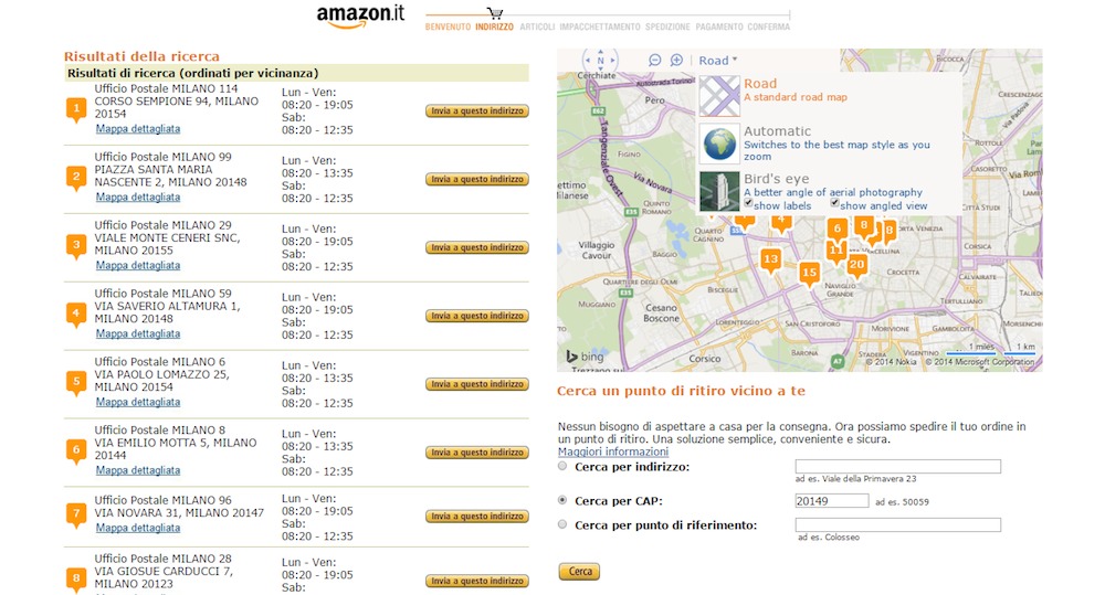Il colosso dell’e-commerce annuncia oggi Amazon Pick-up Point, il servizio che permette di ritirare i prodotti ordinati anche in 10.000 uffici postali italiani. Gli utenti che effettuano un acquisto su Amazon.it possono così da oggi scegliere il pick-up point per il ritiro, con posizione e orari di apertura più adeguati per le proprie esigenze. Nella fase di acquisto, quando si sceglie la modalità di spedizione, il sistema Amazon permette di scegliere la nuova opzione Amazon Pick-up Point: è possibile cercare l’ufficio postale più vicino in base al proprio indirizzo, al codice postale oppure anche a partire da un punto di interesse.