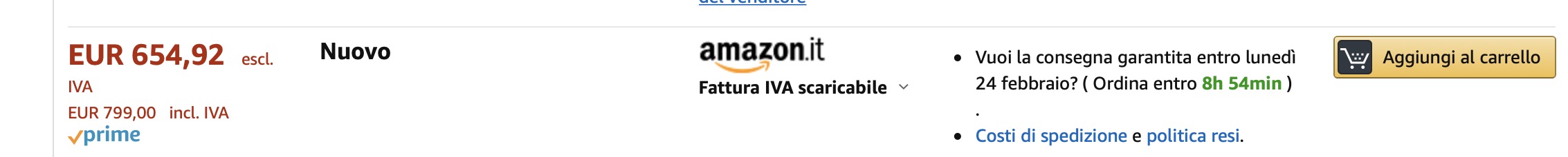Click qui per comprare – selezionate il colore Grigio Siderale e poi cliccate su “altri rivenditori” e selezionata la vendita e spedizione da Amazon.