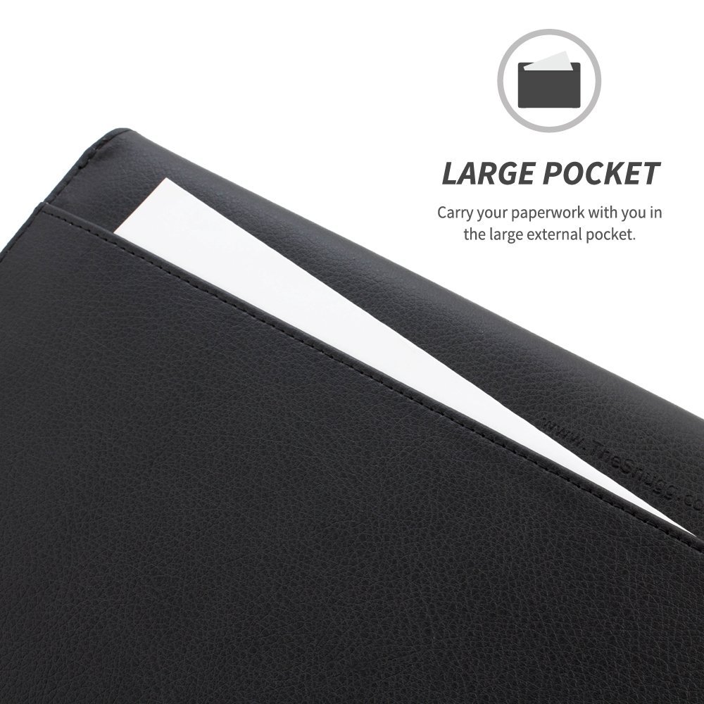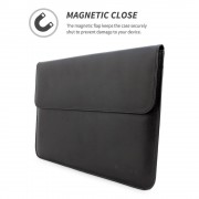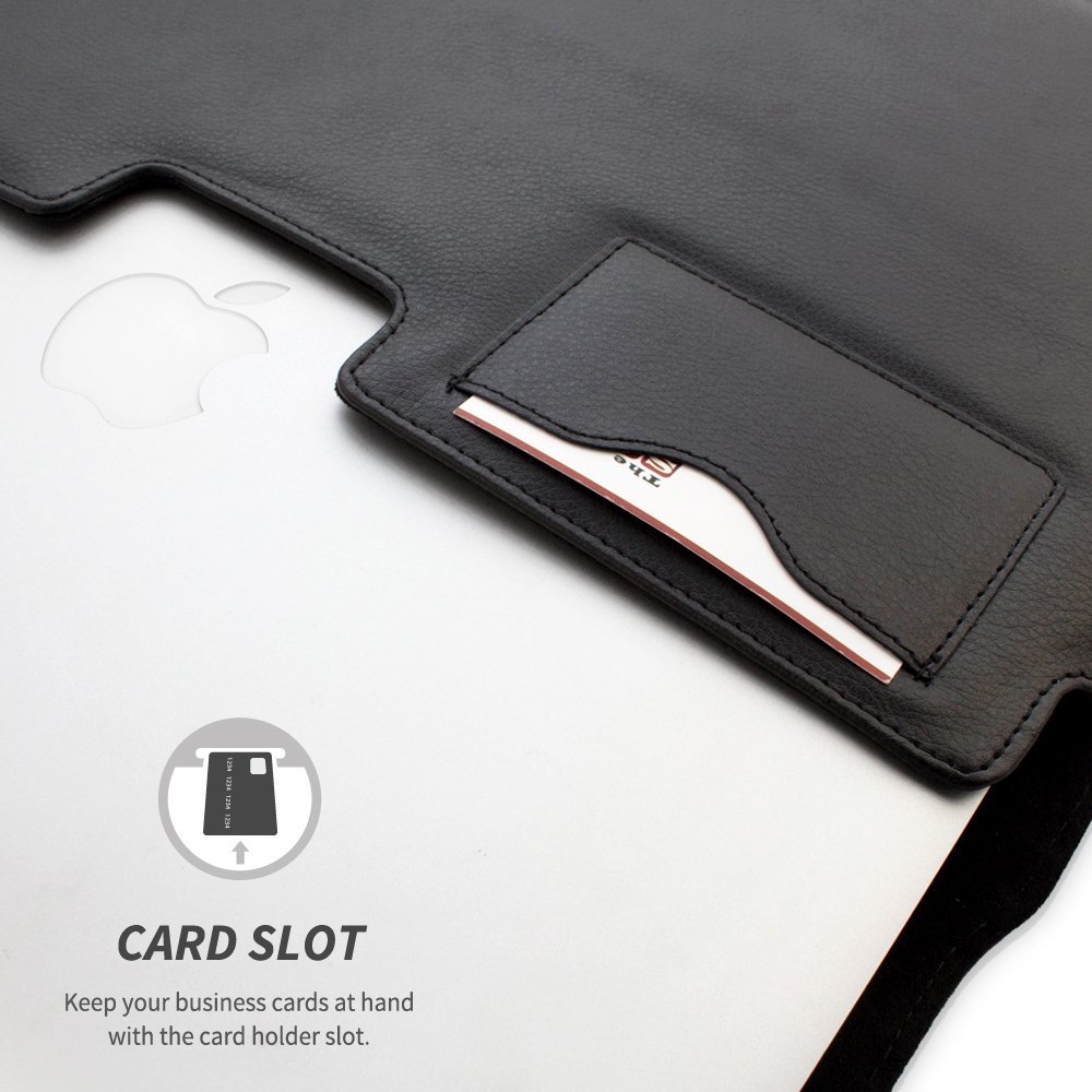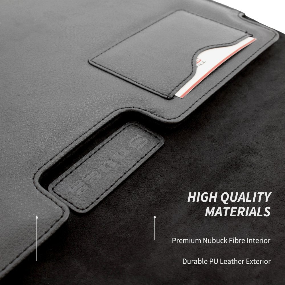 Questo prodotto è di elevata qualità, tra i migliori nel suo segmento di mercato, quello delle custodie cosiddette “sleeve”, buste attillate all’interno delle quali si fa scivolare il proprio dispositivo. Realizzata in pelle sintetica, lucida esternamente e in scamosciato internamente, è costruita con attenzione alla solidità e alla protezione del dispositivo da graffi e piccoli urti. Il mac si infila con precisione all’interno anche se lascia spazio sufficiente per non forzare. Numerosi i dettagli di design che contribuiscono a distinguerla da altri prodotti: a disposizione abbiamo una tasca esterna studiata per custodire cartelle, fogli A4, documenti in genere; una seconda custodia contiene biglietti da visita e uno speciale ritaglio, permette di collegare il MagSafe per ricaricare il Mac senza estrarlo dalla custodia. Infine l’aletta frontale è chiusa da un magnete.