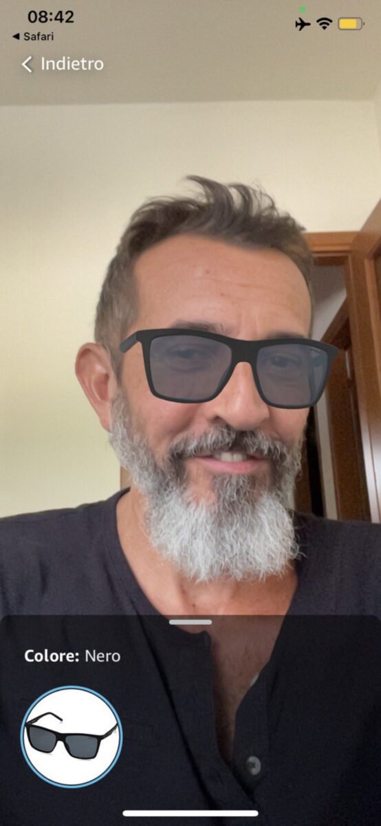 Dopo aver aperto l’app di shopping Amazon sui dispositivi iPhone e iPad (si scarica gratis da questa pagina di App Store) i clienti possono scoprire – direttamente tramite l’hompege di Amazon Fashion – la selezione di occhiali da sole disponibile alla prova virtuale. È anche possibile accedere alla prova in realtà aumentata degli occhiali da sole aprendo Safari da iPhone e iPad e poi aprendo questo collegamento.