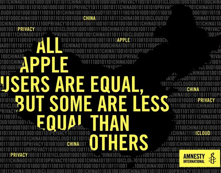 Amnesty International ha lanciato una nuova campagna sui social media, in cui contesta ad Apple il “tradimento” di milioni di utenti cinesi di iCloud i cui dati personali “saranno sconsideratamente a disposizione del governo cinese”. Con un richiamo al noto spot televisivo “1984” di Cupertino, la campagna dell’organizzazione che si occupa di diritti umani, riprenderà il tema orwelliano con lo slogan riadattato “Tutti gli utenti di Apple sono uguali ma alcuni sono meno uguali di altri”.
