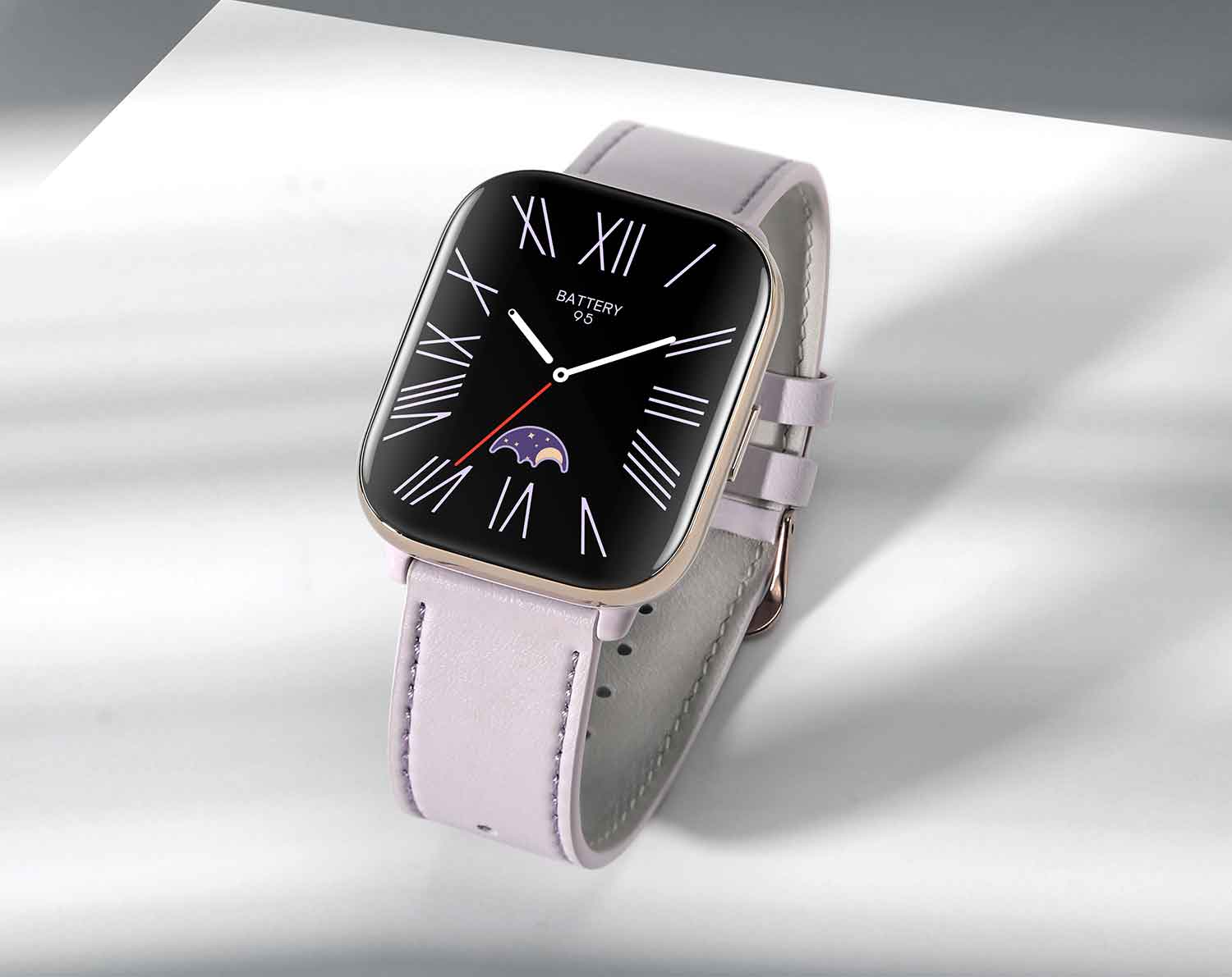 I modelli nelle colorazioni Petal Pink e Midnight Black hanno una struttura rinforzata con un telaio in lega di alluminio, mentre il modello Lavender Purple utilizza materiali diversi: il telaio è in acciaio inossidabile e il cinturino dell’orologio è in pelle vegana.