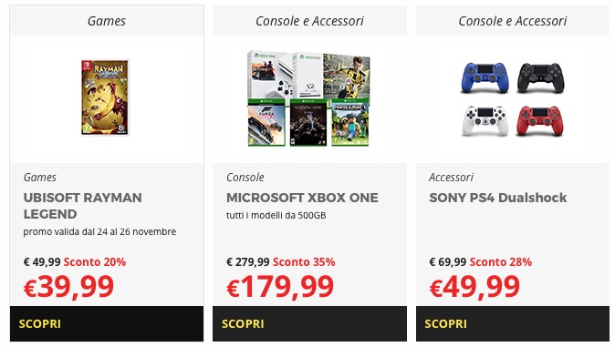 Le offerte sono valide ad esaurimento fino alla mezzanotte del Cyber Monday, 27 Novembre.