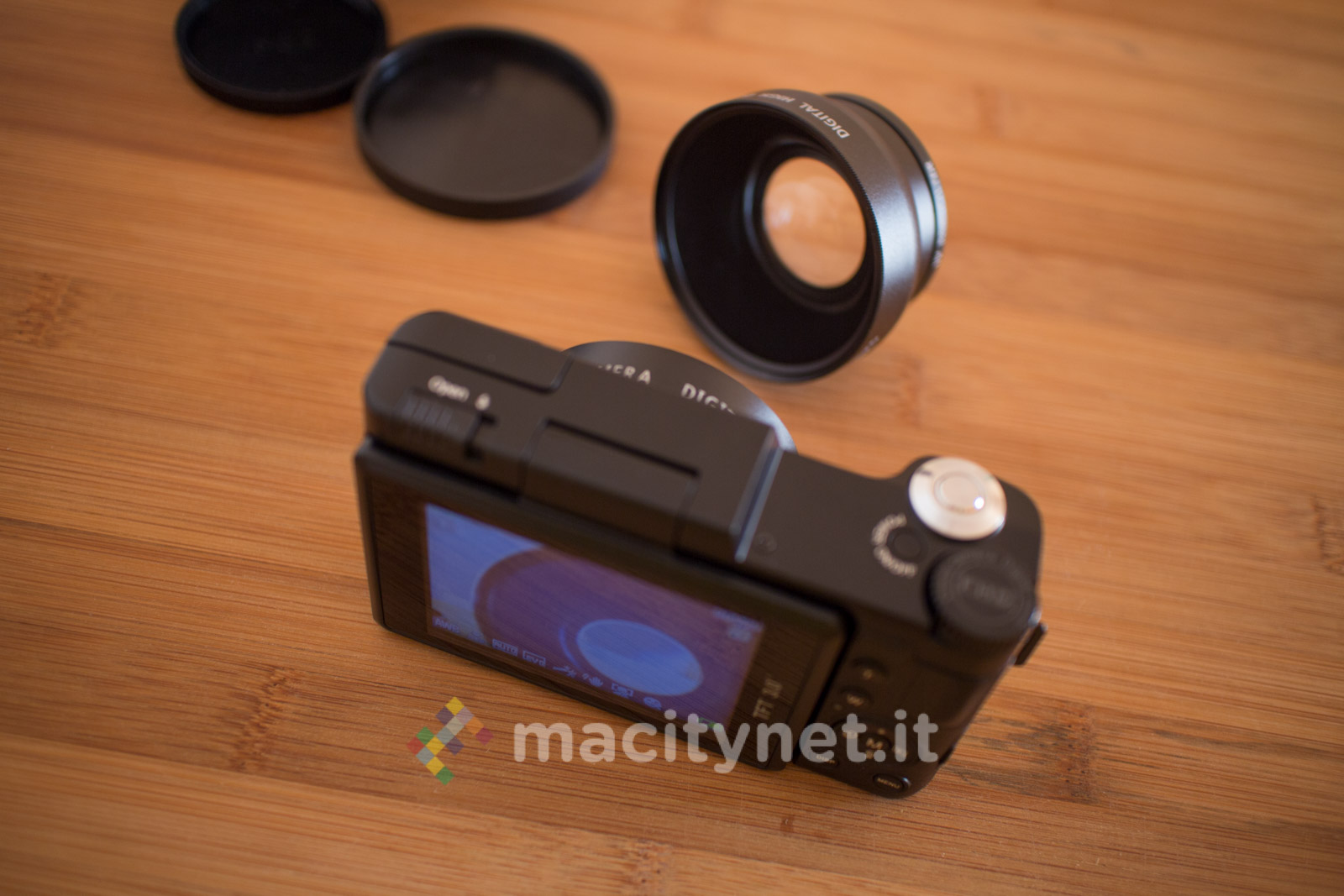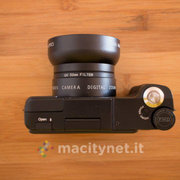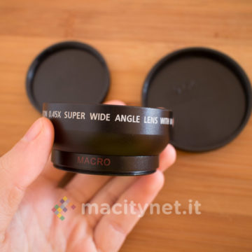 Giocare con la fotografia è comunque possibile sfruttando l’obiettivo incluso in confezione. La fotocamera infatti, di base, monta una lente che ad occhio dovrebbe aggirarsi intorno ai 40–50mm di lunghezza focale. E’ tuttavia possibile avvitare (attacco da 52mm) sopra quest’ultimo l’obiettivo grandangolare 0.45X che aumenta il campo inquadrato. Si tratta di una lente che, qualitativamente parlando, non si discosta molto dai kit compatibili con gli smartphone, con una leggera perdita di dettaglio ai bordi.