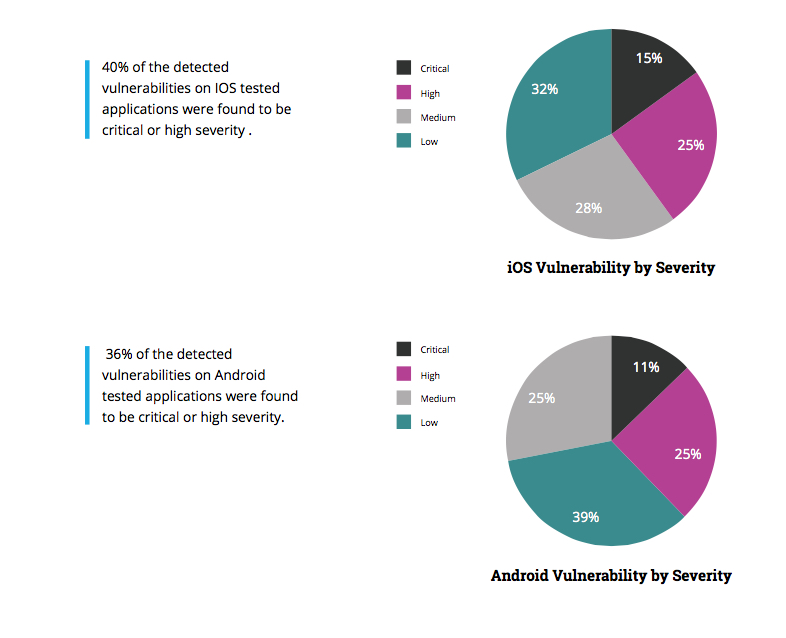 La maggior parte delle falle di sicurezza sono il risultato di vulnerabilità insite nel codice degli sviluppatori, un dato che mostra come al momento il mercato delle applicazioni mobili nel suo complesso sia in ritardo rispetto alle migliori pratiche di programmazione in termini di sicurezza.