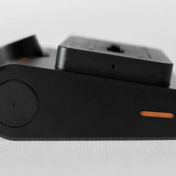 Su uno dei due lati c’è un piccolo altoparlante per poter ascoltare l’audio delle registrazioni o le segnalazioni dell’assistente vocale (all’accensione, ad esempio, se non abbiamo inserito una scheda di memoria ci verrà segnalato appunto “Please insert TF card”), sul bordo superiore c’è l’ingresso microSD mentre di lato invece troviamo la presa microUSB per l’alimentazione e ricarica della batteria interna e il piccolo pulsante di Reset (raggiungibile solo con la punta di uno stuzzicadenti o strumenti simili).