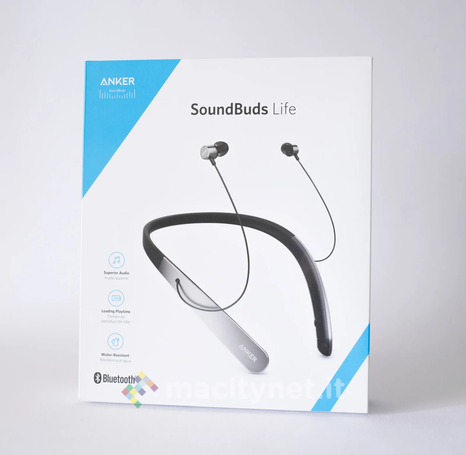 Nelle scorse settimane abbiamo provato Anker Soundbuds Life, un paio di auricolari in-ear che, per la loro particolare conformazione, riteniamo particolarmente comodi per ascoltare la musica o gestire le telefonate tra il traffico cittadino. Sono infatti accompagnati da un girocollo flessibile che permette di appenderle al collo con eleganza, complice anche il sistema magnetico che li blocca riducendo al minimo il dondolio degli auricolari durante i movimenti.