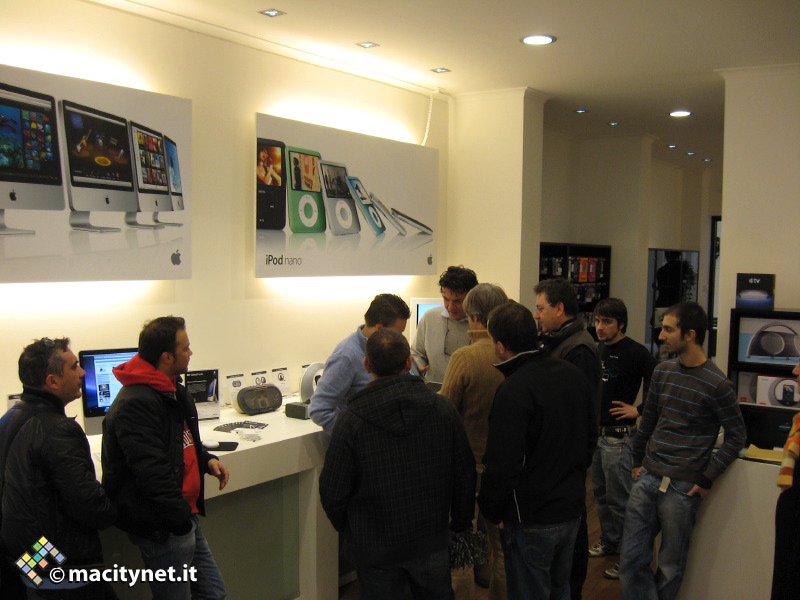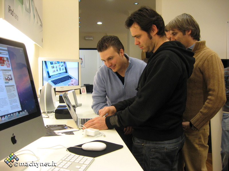 La nostra visita ha coinciso con quella dell’Amministratore Delegato di Apple Italia Enzo Biagini che portava con se una simpatica sorpresa per gli avventori assidui e quelli occasionali del punto vendita: il nuovo MacBook Air, esposto per qualche ora e ammirato per le sue caratteristiche peculiari da utenti Apple di vecchia data e nuovi possibili clienti (soprattutto di sesso femminile) attratti dal design e dalla leggerezza dell’oggetto.