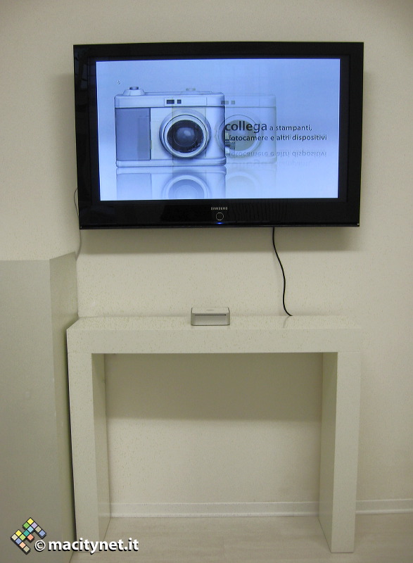 ma sullo sfondo campeggia un minuscolo Mac mini collegato ad un grande schermo da 50″….