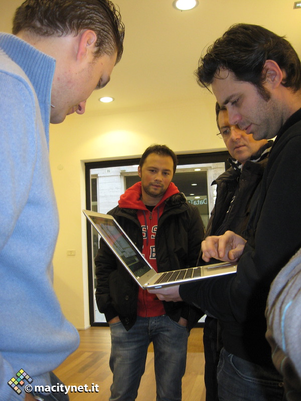 Ma la sorpresa del pomeriggio era il MacBook Air “apparso” insieme ad Enzo Biagini ai clienti più assidui che sapevano della pre-apertura del negozio e ad alcuni passanti occasionali…