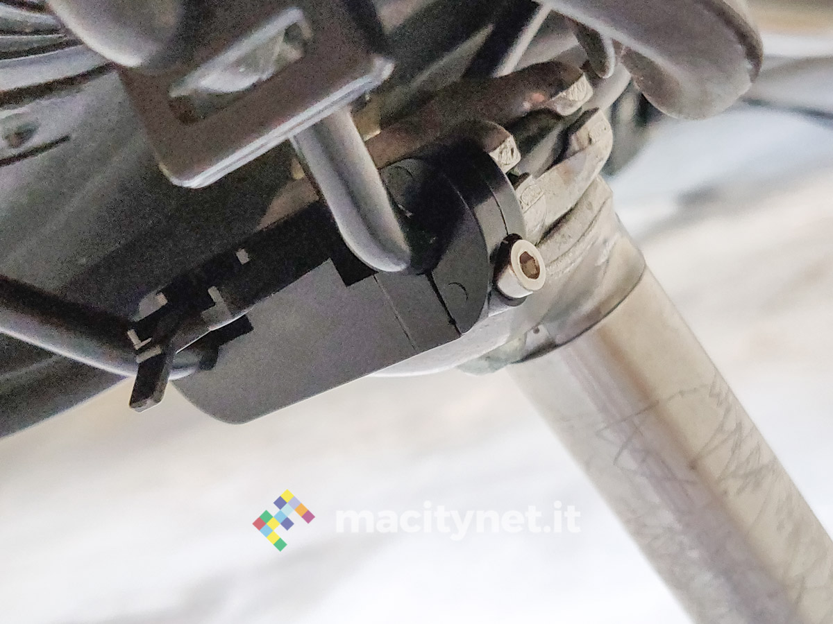 Montare l’antifurto è molto semplice. E’ possibile scegliere tra due posizioni: semi-nascosto sotto la sella oppure leggermente più in basso fissandolo sulla sezione tubolare della sella. Mentre quest’ultima posizione è compatibile al 100% con qualsiasi bicicletta il primo sistema si può utilizzare soltanto se la sella lo permette.