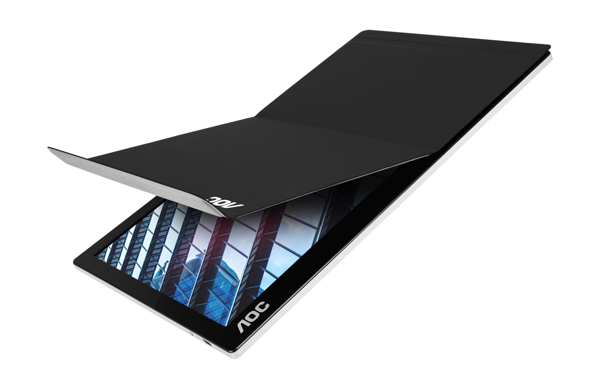 Il design di AOC I1601P è minimalista, con retro in alluminio grigio e una cornice nera sottile frontale. La cover SmartCase inclusa protegge il display da graffi e può essere utilizzata con funzione di sostegno ripiegabile. Con soli 800 grammi di peso, è abbastanza leggero da essere comodamente portato in uno zaino o in una borsa, ovunque si decida di andare: in aereo, in treno o semplicemente nel tragitto casa-lavoro.