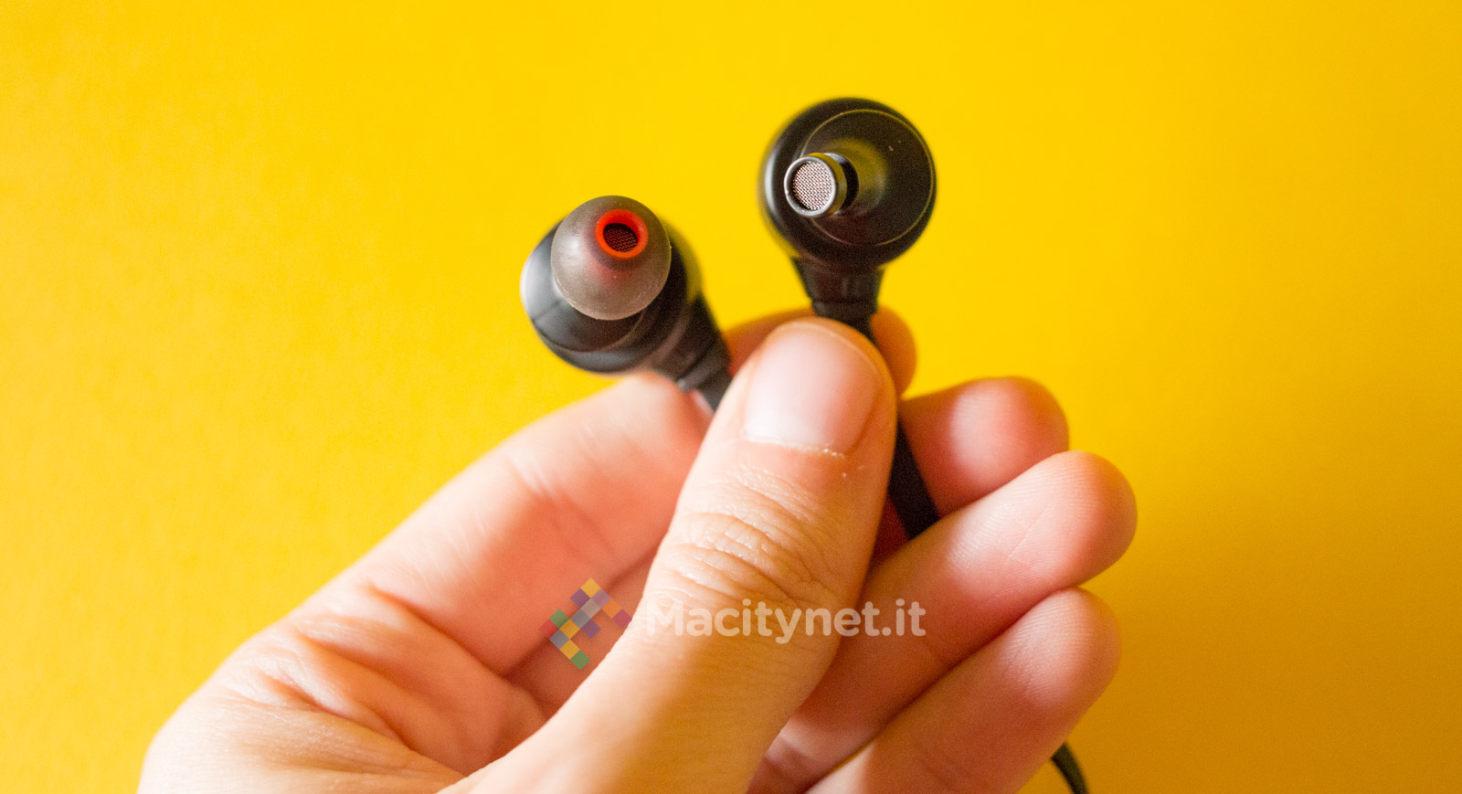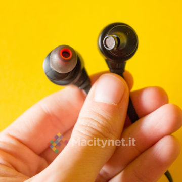 In tutta sincerità non siamo riusciti a tenerle al massimo del volume per più di una manciata di secondi. La potenza dei driver da 8mm si fa sentire anche a volumi inferiori, nello specifico abbiamo ridotto il volume dell’iPhone all’80% che, combinato con l’insonorizzazione dei gommini, ci ha permesso ugualmente di isolarci dai rumori esterni e godere a pieno delle tracce musicali.