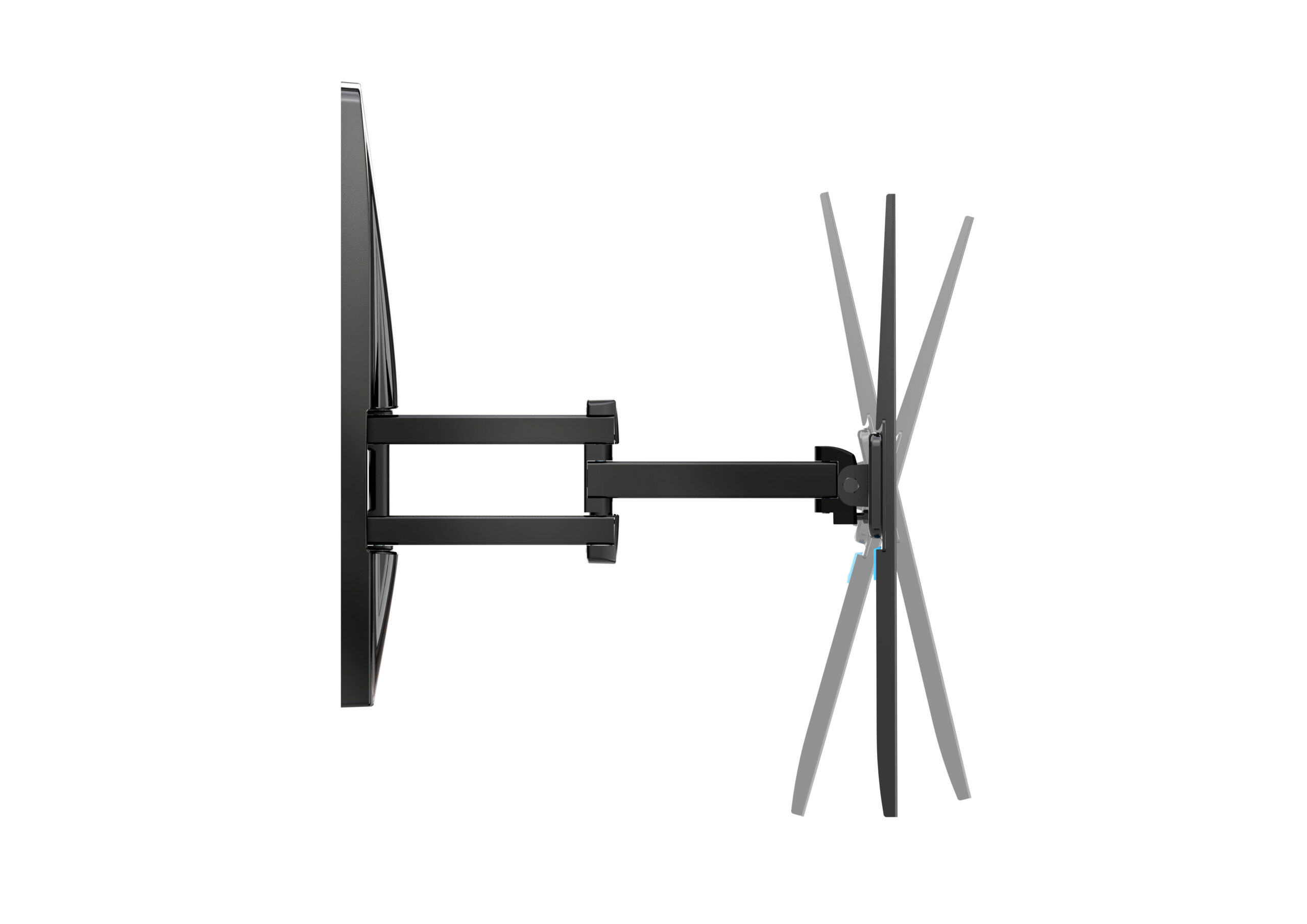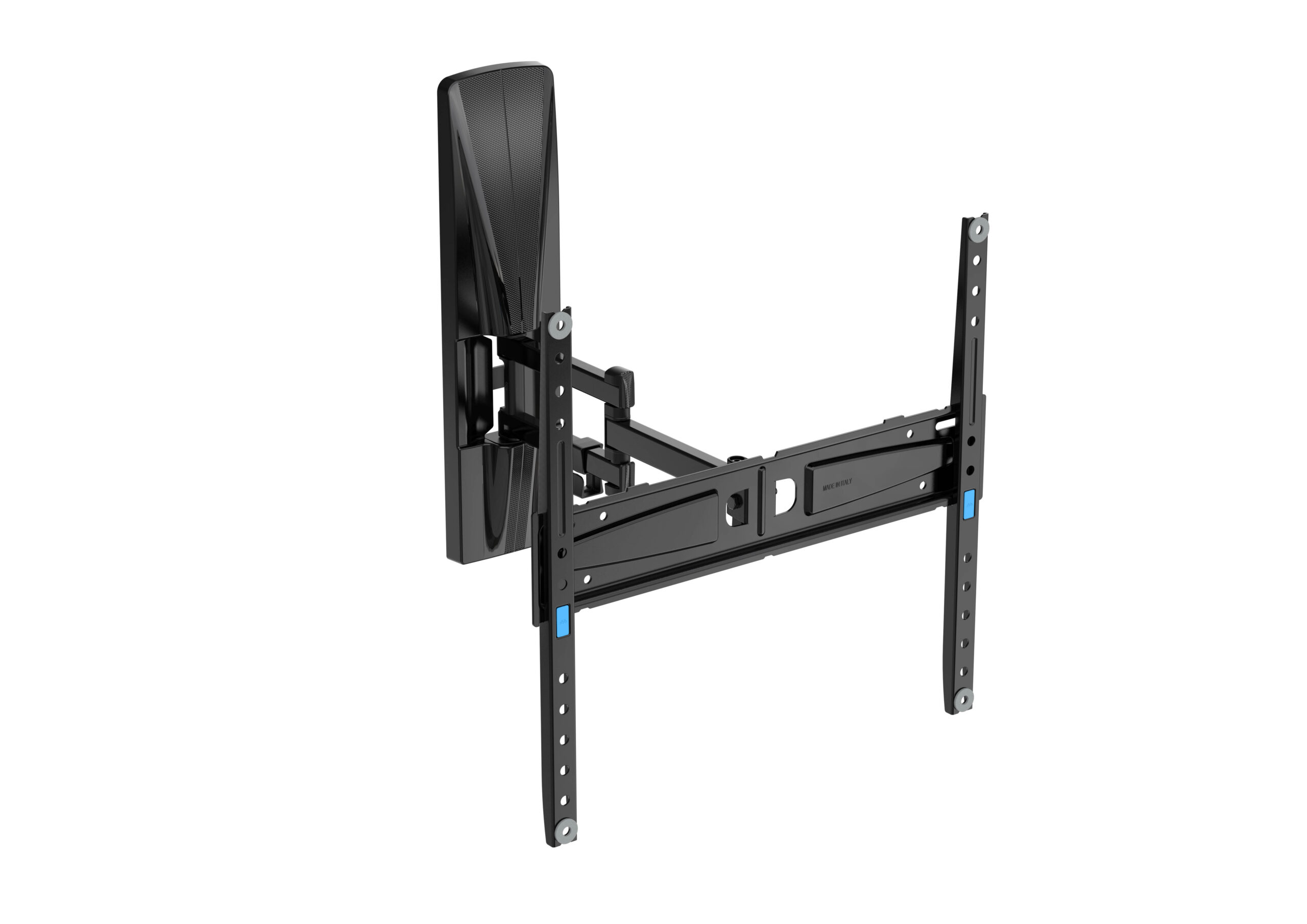 EXTRA XDR 200-400 è un supporto TV indicato come adatto per il montaggio su pareti in cartongesso, a prescindere dalla posizione del montante. Il supporto è in grado di sorreggere TV anche di importanti dimensioni (sino a 65″ e con un peso massimo di 30 chilogrammi) e, grazie alla sua struttura portante che rimane nascosta dietro la tv, consente di ruotare il televisore di 70° Nella sua posizione chiusa, rimane aderente al muro mentre nella posizione aperta raggiunge una distanza dal muro di 376 millimetri.
