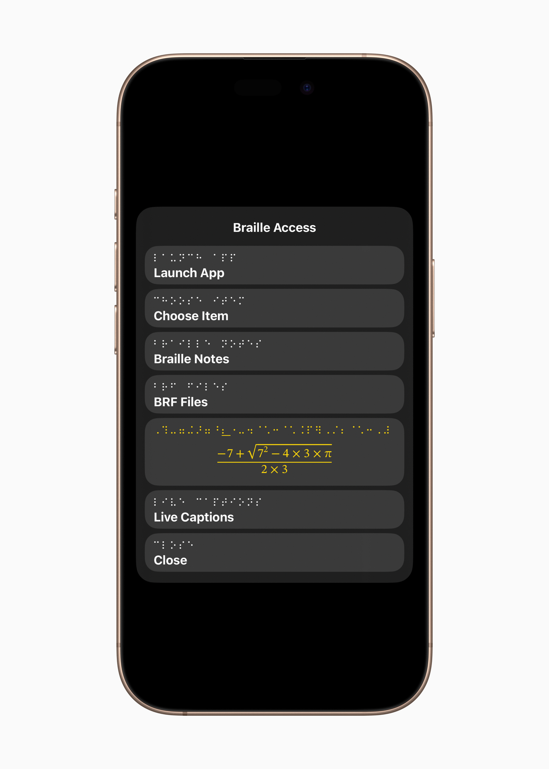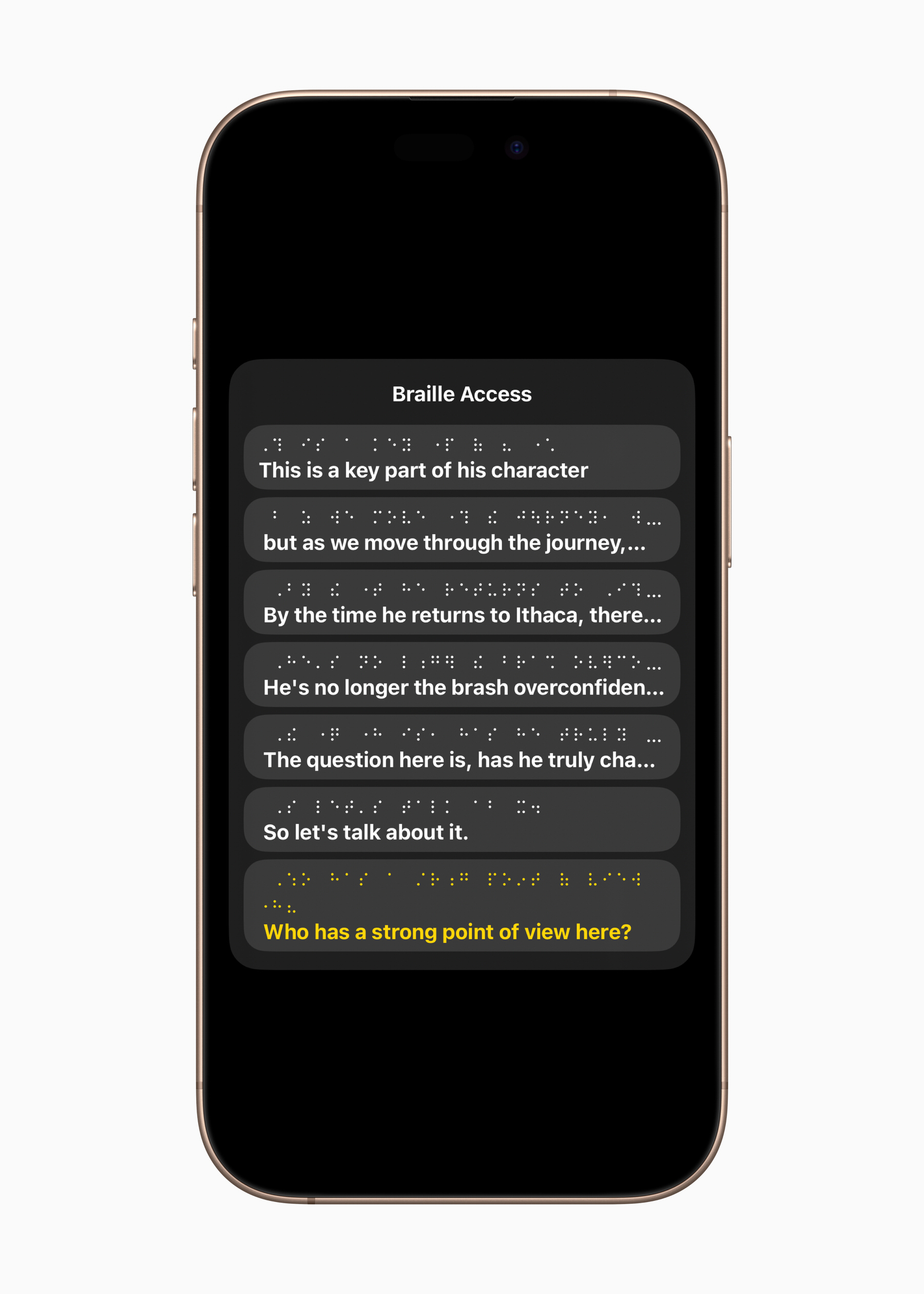 Braille Access è una nuova app che punta a rendere i dispositivi Apple strumenti completi per chi usa il braille. Compatibile con iPhone, iPad, Mac e Vision Pro, permette di scrivere appunti, aprire file BRF, fare calcoli con il codice Nemeth usato nelle materie scientifiche e gestire app tramite input braille. Il tutto integrato con le didascalie in tempo reale, per trascrivere conversazioni direttamente su display braille.