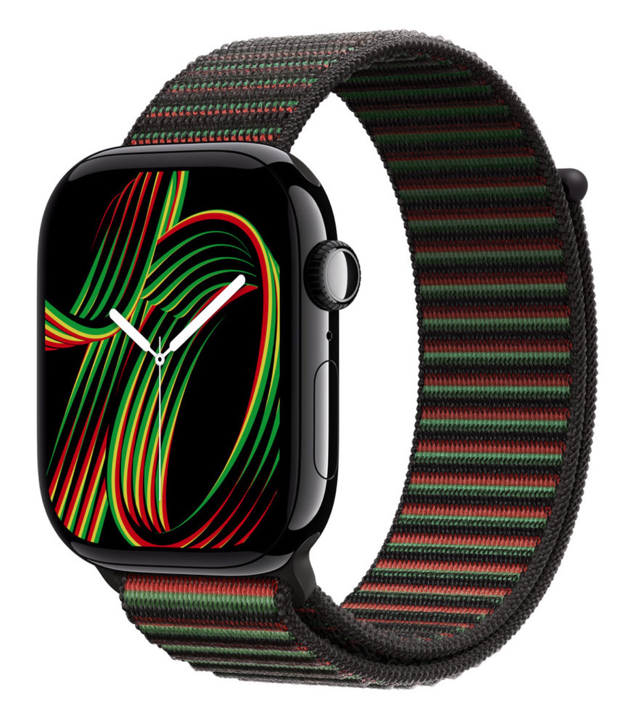Anche quest’anno il cinturino Sport Loop Black Unity rappresenta l’elemento centrale della collezione. Disponibile in edizione limitata, il design intreccia i colori della bandiera panafricana: il nero, il verde e il rosso. Molto particolare il suo effetto lenticolare che crea un’illusione dinamica quando viene indossato, mostrando il verde su un lato e il rosso sull’altro, mentre i colori si mescolano ogni volta che il polso si muove (durante il movimento, il colore giallo appare temporaneamente nella transizione tra il verde e il rosso).