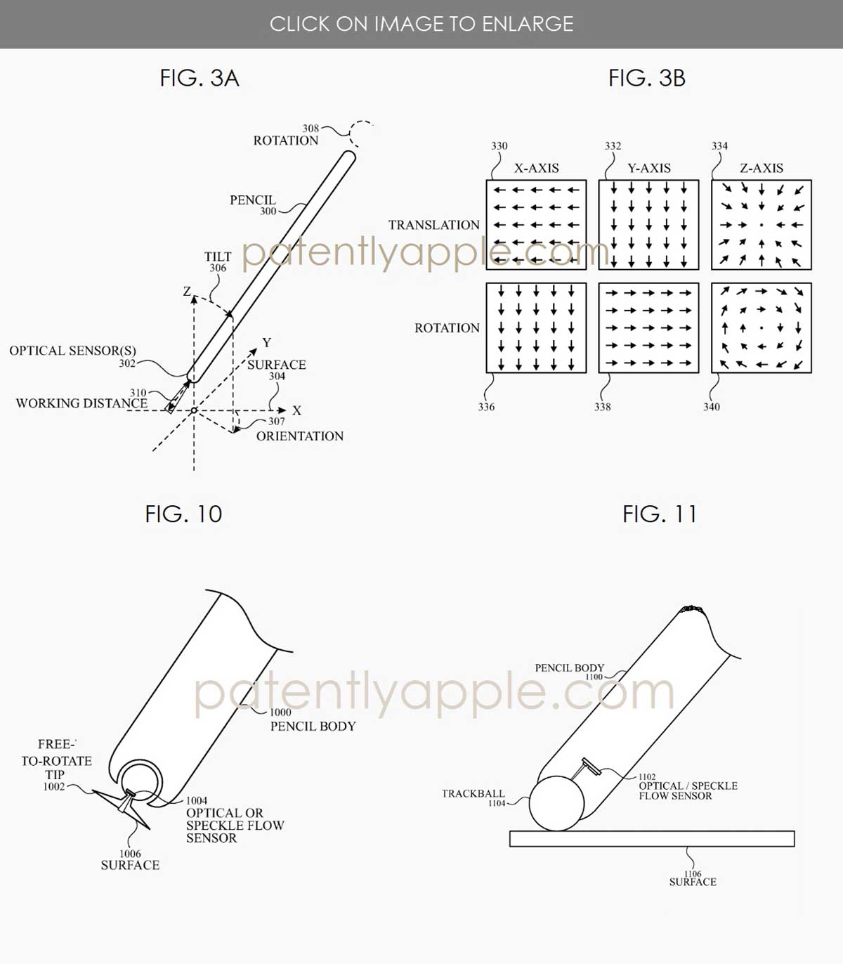 Le penne digitali si sono diffuse come dispositivi di input da abbinare a superfici touch ma richiedono per l’appunto superfici specifiche, limitando le possibilità di interazione. Il brevetto di Apple riferisce di sensori ottici in grado di individuare posizione, orientamento e movimento.
