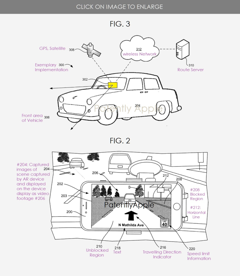 Oppure, si legge, attraverso un paio di occhiali Smart – e a questo punto sorge il dubbio che lo sviluppo degli occhiali AR di Apple possa non essere del tutto sospeso – o un iPhone di nuova generazione opportunamente posizionato in un punto strategico del cruscotto e con la fotocamera posteriore attivata per l’analisi dell’ambiente circostante, un sistema cioè simile a quello a cui starebbe lavorando Google già da diverso tempo.