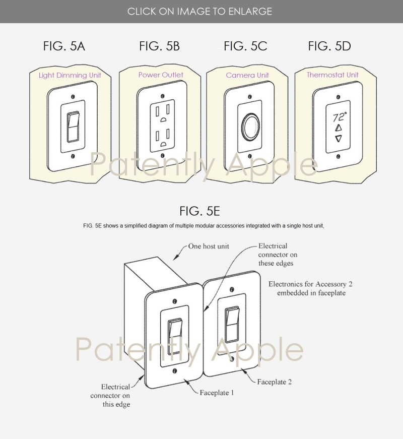 In poche parole, installando un interruttore della luce smart nella sala da pranzo, il sistema è in grado di configurarlo automaticamente per controllare le luci della camera da pranzo, chiedendo semplicemente il permesso all’utente. Il componente indicato come “pannello modulare a parete” fa riferimento a quelli che sembrano unità di base standard come prese di corrente o interruttori della luce alimentate, elementi al contorno dei quali è possibile abbinare una varietà di diverse unità hardware. Come accennato, il brevetto è molto profondo, esteso (qui altri dettagli dal sito PatentlyApple) e richiederebbe la collaborazione di molte società diverse per trasformare l’idea in realtà.