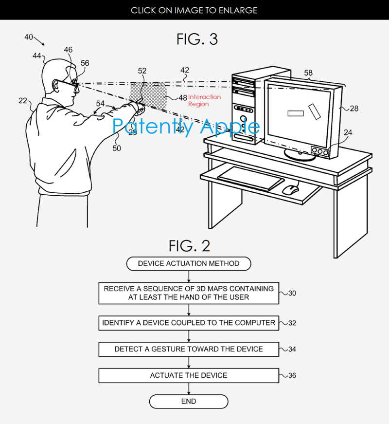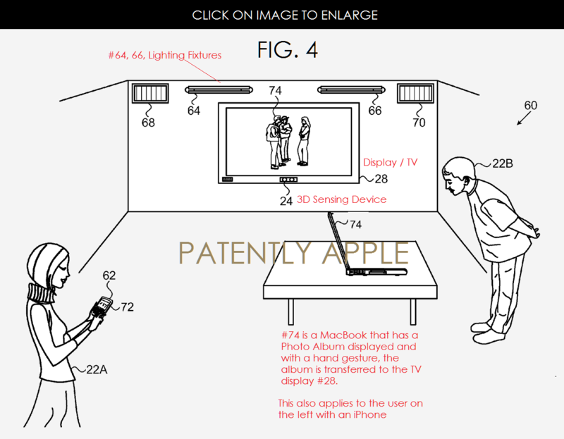 Il meccanismo descritto ricorda un diverso brevetto registrato da Apple tempo addietro relativo a un sistema per il controllo da switch virtuali da proiettare su una parete a piacere con i quali accendere luci, condizionatori e gestire sistemi di intrattenimento. Alcuni dei nomi indicati nella registrazione del nuovo brevetto sono legati a PrimeSense, nota per avere creato la tecnologia per il sensore di movimento Kinect di Xbox 360, azienda che Apple ha acquisito a novembre del 2013.