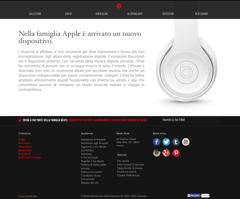 Infine la fusione di Apple e Beats è completata con l’integrazione delle vendite delle due società. Ora la sezione e-commerce di Beats per gli acquisti online è scomparsa per essere completamente integrata su Apple Store online.