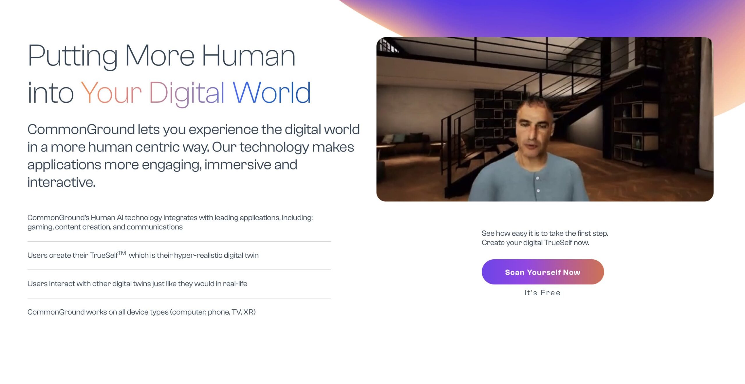 La scansione del volto dell’utente in 3D avviene con lo smartphone, permettendo di creare un avatar tridimensionale che è possibile sfruttare in vari contesti regolando l’illuminazione, la temperatura e la luminosità, della Persona digitale.