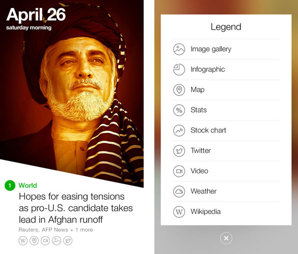 Nel sovraffollamento di notizie e fatti, Yahoo News Digest sfrutta decine di fonti diverse per offrire all’utente esclusivamente le notizie più importanti, riassunte all’essenziale. In pochi secondi, aprendo l’app e scorrendone le pagine, è possibile avere un quadro completo degli eventi più importanti accompagnati da immagini, mappe, video, citazioni, infografiche e molto altro ancora
