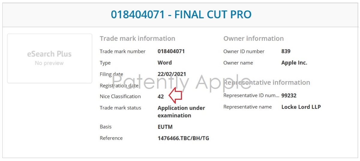 Quando si va al portale IP dell’OMPI sotto la classe 42, una delle prime cose che che si nota elencata è l’intestazione Software as a service (noto come SaaS). L’aggiunta della classe 42 a Final Cut Pro apre le porte alla trasformazione del software come servizio tramite abbonamento cloud o noleggio in futuro. Attualmente, invece, il software è venduto per una tariffa fissa di 329,99 euro su Mac App Store. Al momento, come evidenzia anche patentlyapple, non è noto se Apple deciderà di percorrere effettivamente questa strada, anche se potrebbe certamente essere un’opzione.