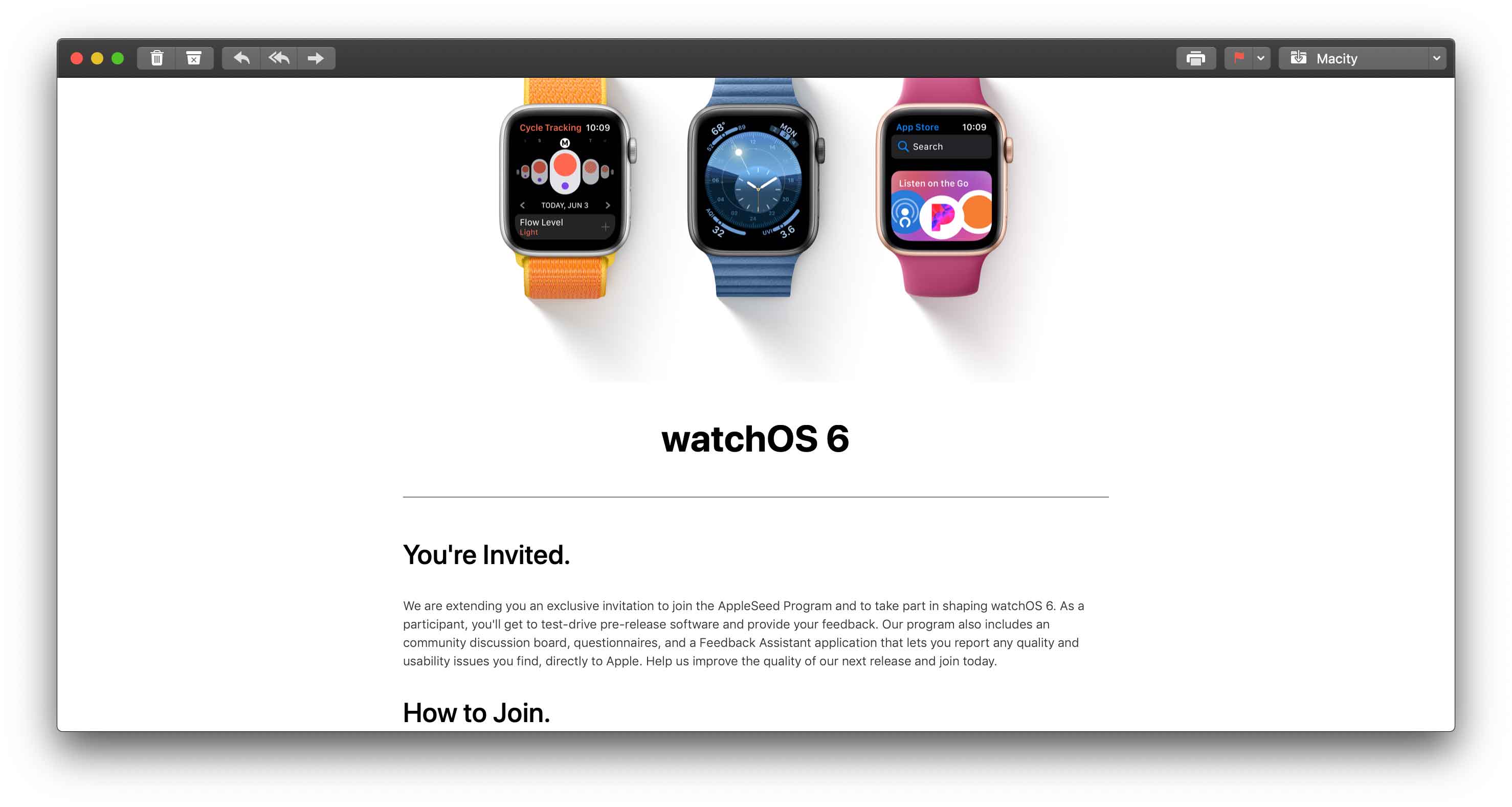 Home » Macity - Apple » Apple Watch » Apple manda inviti al gruppo AppleSeed per watchOS 6 beta
