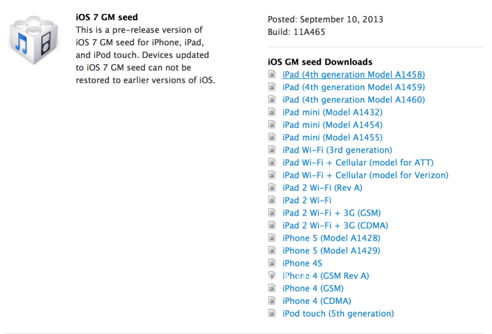 Il rilascio da parte di Apple è avvenuto poco dopo la fine dell’evento speciale in cui sono stati presentati i nuovi iPhone 5s e iPhone 5c. Gli sviluppatori possono scaricare iOS 7 Golden Master, indicata come Build 11A465 dal portale di Apple dedicato ai programmatori. Nel momento in cui scriviamo non sono state scoperte novità di rilievo: variazioni e novità potrebbero però venire alla luce nelle prossime ore e nei prossimi giorni, man mano che gli sviluppatori scandaglieranno il codice della nuova release.
