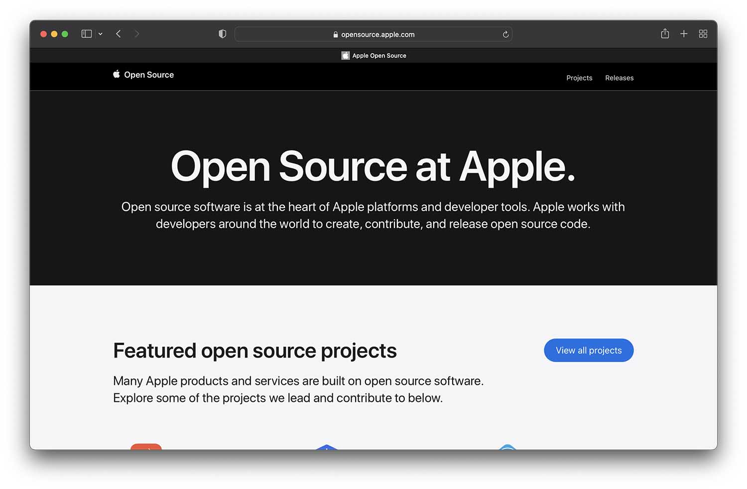 Il sito dedicato all’open source è accessibile da questo indirizzo. La multinazionale di Cupertino da sempre dedica una sezione del proprio sito all’Open Source: da questa è possibile scaricare i sorgenti delle componenti open source di iOS, i sorgenti di componenti usati nei sistemi operativi Apple e alcune applicazioni.