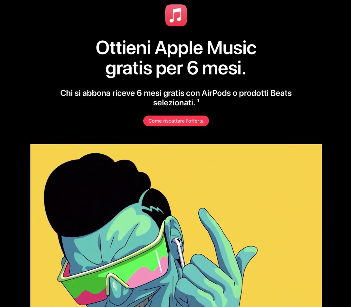 In una promozione più unica che rara, Apple regala 6 mesi di Apple Music gratis ai nuovi abbonati al servizio di musica in streaming di Cupertino che possiedono dispositivi AirPods e Beats selezionati. Il valore dell’offerta è pari a un risparmio di circa 60 euro, tenendo presente il prezzo 9,99 euro al mese per il piano individuale per sei mesi.