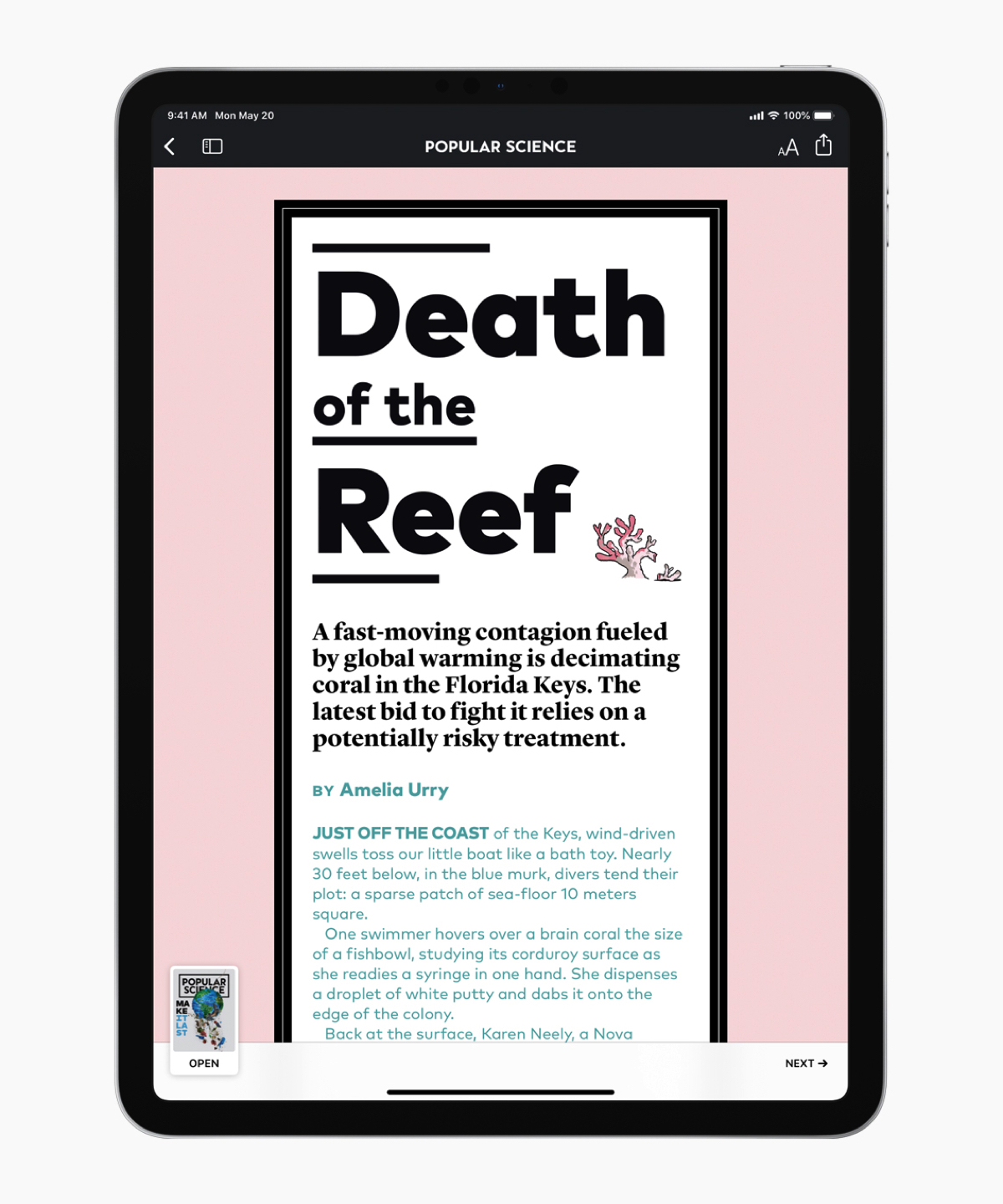 «Abbiamo ricevuto numerosi ottimi commenti dalle centinaia di editori disponibili su Apple News+. Gli ultimi aggiornamenti di Apple News+ mirano a mostrare al meglio il loro incredibile giornalismo e mettono le fonti di notizie più affidabili a portata di mano dei lettori» dichiara Eddy Cue, vicepresidente senior Internet Software and Services di Apple.
