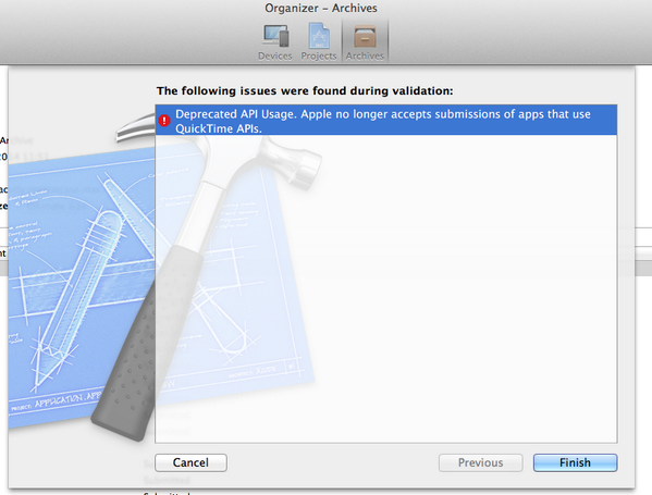 Apple non accetta più applicazioni che sfruttano le API QuickTime. La segnalazione arriva dallo sviluppatore Drew McCormack che sottolinea le API sarebbero ora “deprecate” (un termine tecnico che designa componenti in precedenza utilizzabili ma che diventano non più accettabili).