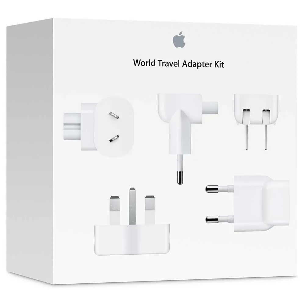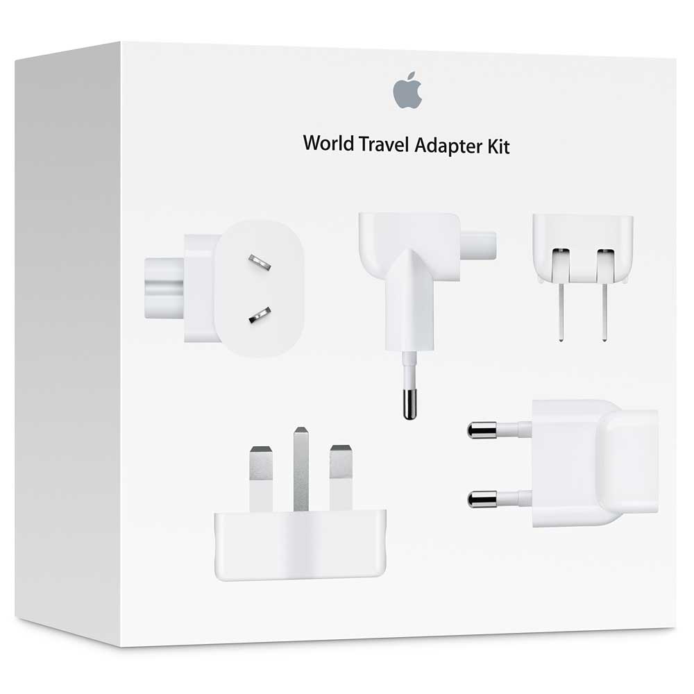 Apple ha aggiornato e ridotto di il “kit adattatore internazionale”, una soluzione che comprende sette spine CA adatte a diversi tipi di prese elettriche di tutto il mondo. Ogni spina ha un’incisione al laser con l’indicazione delle aree geografiche nelle quali è compatibile. Il kit è utile per chi viaggia spesso all’estero e permette di collegarsi alla prese nella maggior parte dei Paesi.