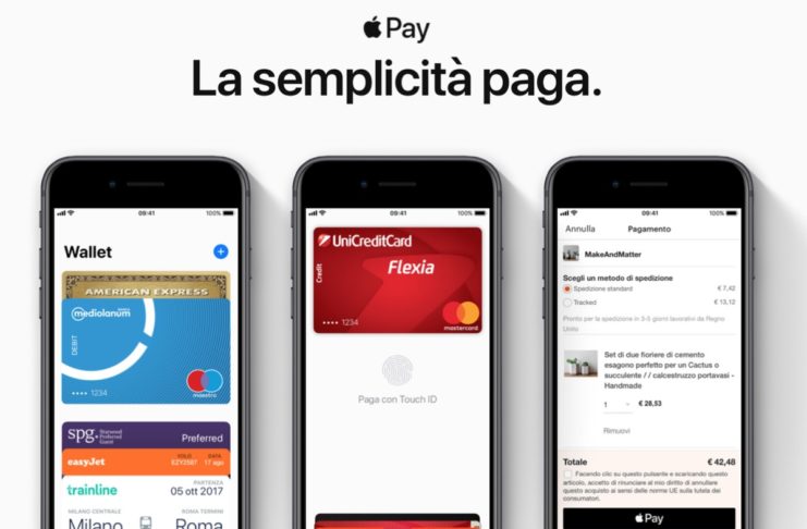 Ricordiamo che per poter utilizzare la piattaforma di pagamento mobile di Apple è necessario disporre di un iPhone 6 o versioni successive, mentre la funzione è disponibile anche su un qualsiasi Apple Watch. Apple Pay, inoltre, può essere utilizzato in alcune applicazioni e sul web su iPad e Mac dotati di Touch ID.