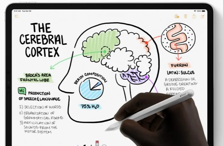 Facendo tap sullo schermo con Apple Pencil, si potrà sbloccare iPad e lanciare l’app Note, da utilizzare per prendere appunti, dipingere un acquerello o disegnare progetti o schemi in pochi secondi. E’ possibile anche annotare email, screenshot e molto altro, scrivere o disegnare direttamente sulle email e in app come Keynote, oppure aggiungere commenti a PDF e fotografie.