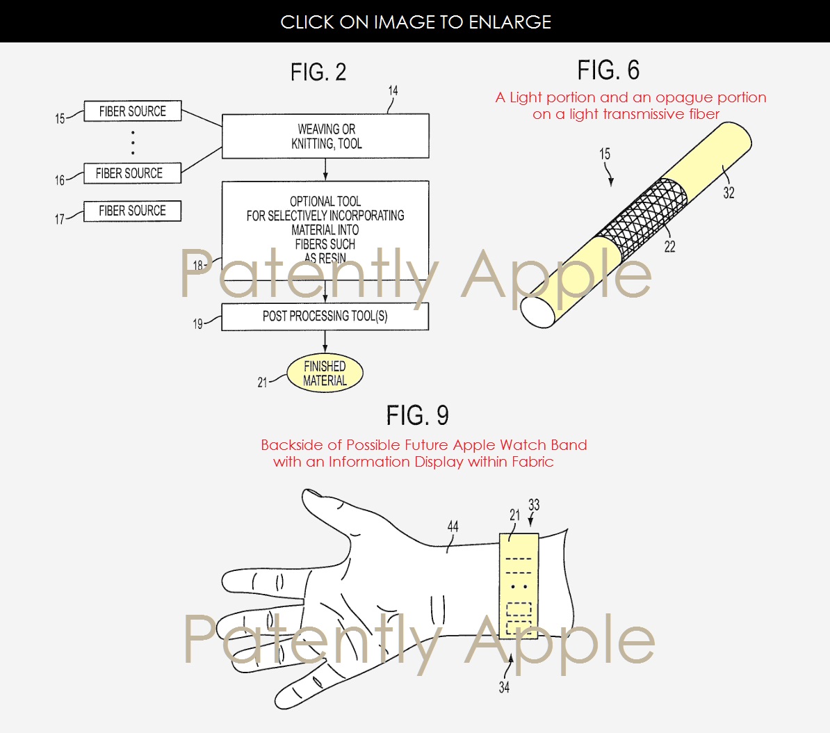 Interessante il riferimento di Apple a un “Woven Display” (un display realizzato in tessuto) che potrebbe essere usato per mostrare notifiche e altri elementi su cinturini, borse e simili. Vedremo in futuro cosa ha in mente Apple ricordando come sempre che la multinazionale di Cupertino registra annualmente centinaia di brevetti e non sempre questi diventano prodotti veri e propri.