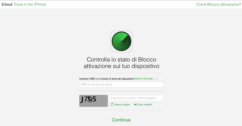 Il nuovo strumento di Apple per la verifica dello stato di Blocco attivazione è disponibile a partire da questa pagina. Naturalmente per poterla utilizzare prima dell’acquisto di un dispositivo iOS usato occorre la collaborazione del venditore nel fornire il codice IMEI o il codice seriale del dispositivo.