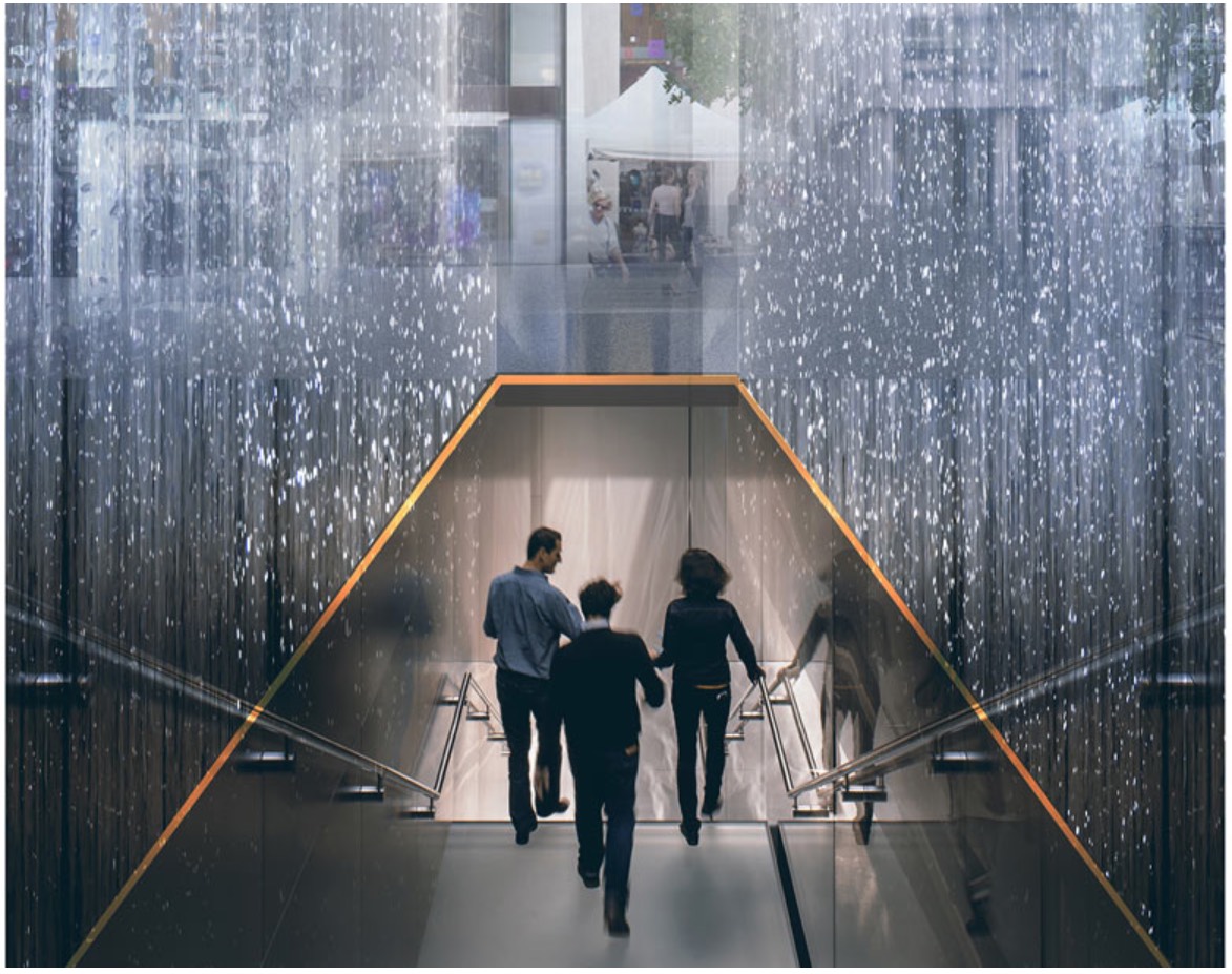 Entrare in Apple Piazza Liberty sarà una esperienza memorabile, da raccontare non solo agli amici appassionati Apple. Infatti per accedere al negozio vero e proprio bisognerà prima scendere la scalinata, compiere qualche passo in direzione della fontana e della cascata: proprio quando il visitatore sarà sovrastato dall’acqua si aprono due passaggi, sia a destra che a sinistra, con un’altra piccola scala che condurrà allo store sotterraneo.