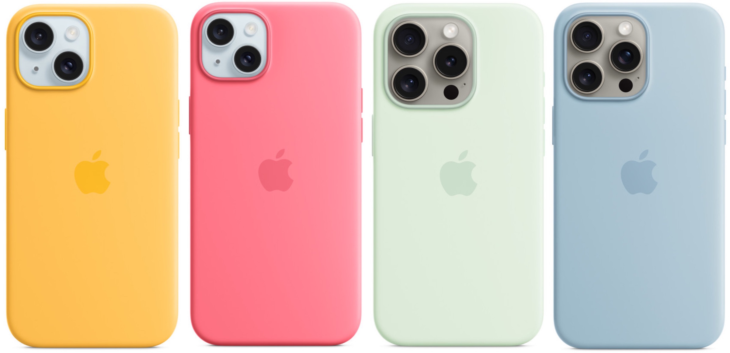 Per quanto riguarda invece le protezioni per iPhone, la collezione Apple Primavera 2024 aggiunge quattro nuovi colori (Menta fredda, Sole, Blu chiaro e Rosa) alla Custodia MagSafe in silicone disponibile l’ultima gamma, ovvero: