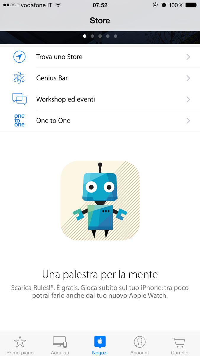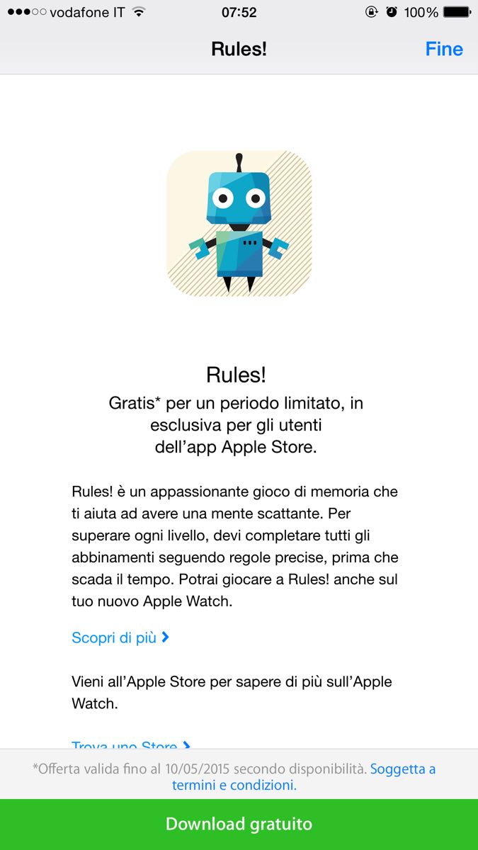 Lanciate l’app Apple Store, cliccate sulla scheda Negozi e scendete in fondo. Troverete una scheda denominata “Una palestra per la mente” che permette di accedere alla promozione attualmente attiva. Cliccate la scheda e da qui seguite le istruzioni per scaricare gratuitamente l’app, che su App Store costa 2,99 euro.